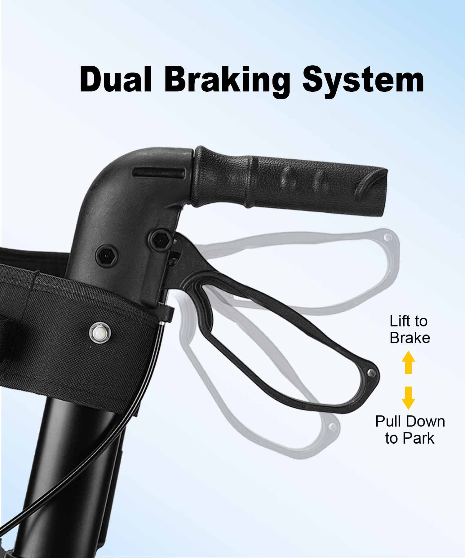 Braking is simple and convenient — just gently squeeze the handle to stop, and release it to continue walking, ensuring a safe and effortless experience.