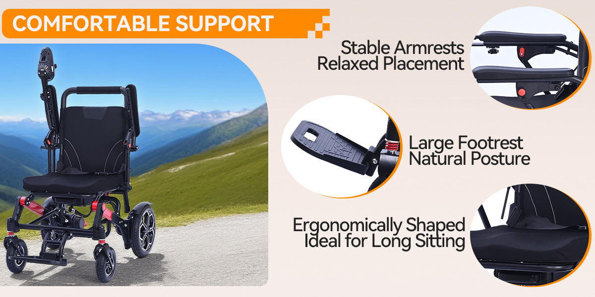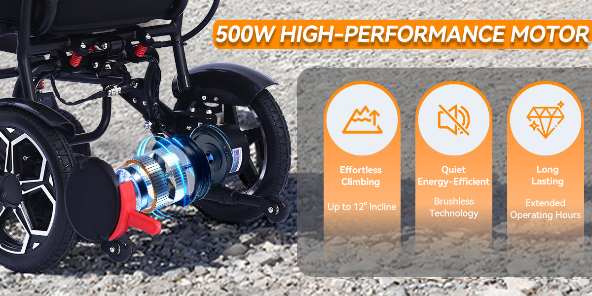 XP04 Foldable Electric Wheelchair – Lightweight 500W Power Wheelchair, 13-Mile Range, 17.32" Ergonomic Seat