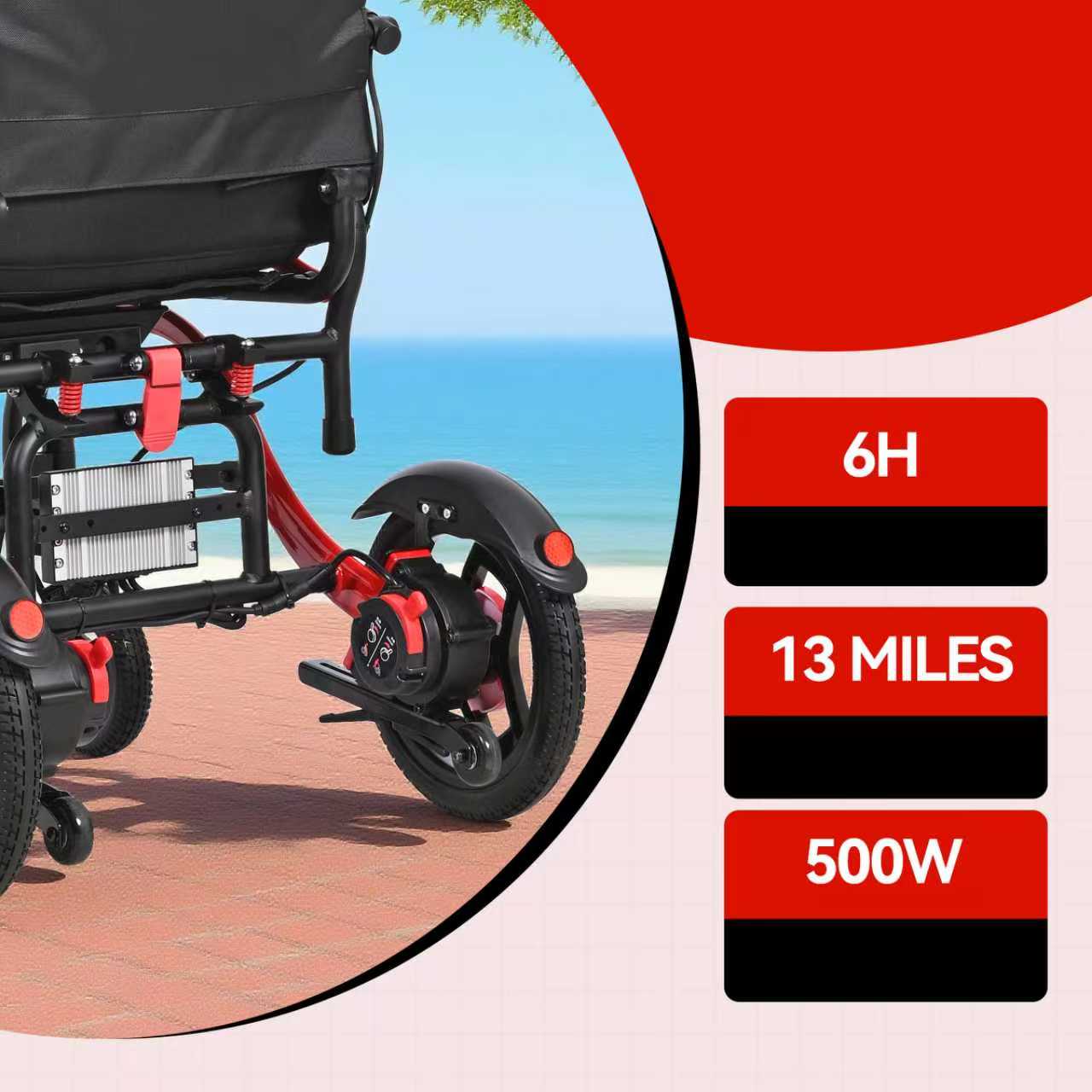 XP03 Portable Electric Wheelchair 330 lbs, 500W Motor, 13 miles Range and Foldable, 10Ah lithium-ion battery