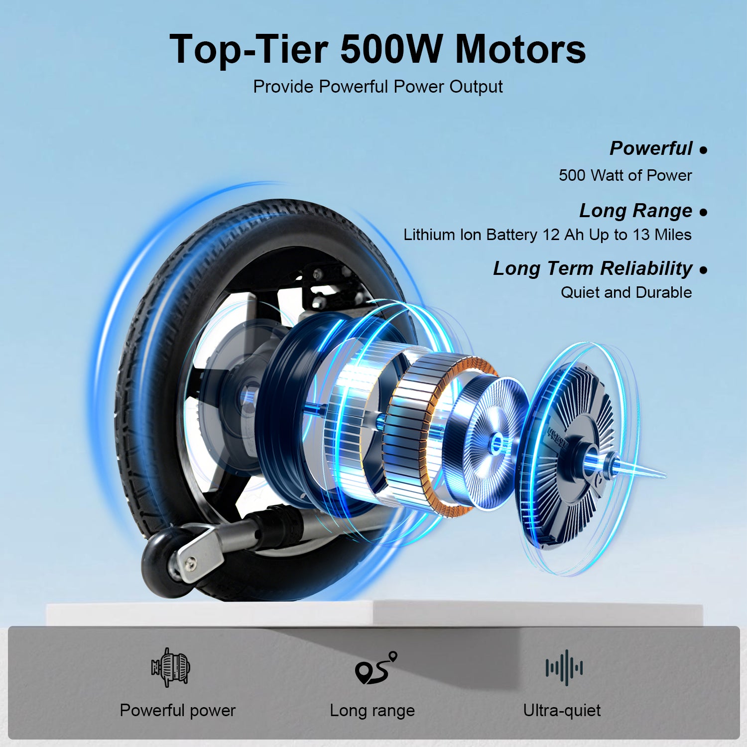 500W Powerful Motor with Long-Range Battery